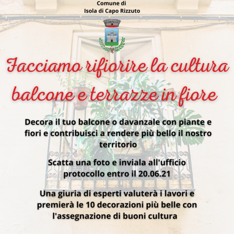 L'amministrazione comunale nel contesto di abbellimento e decoro e del territorio da il via al concorso "Facciamo rifiorire la cultura, balcone e terrazze in fiore".