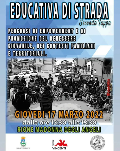 Oggi dalle ore 15.30 alle ore 18.00 secondo appuntamento con EDUCATIVA DI STRADA, nel rione Madonna degli Angeli