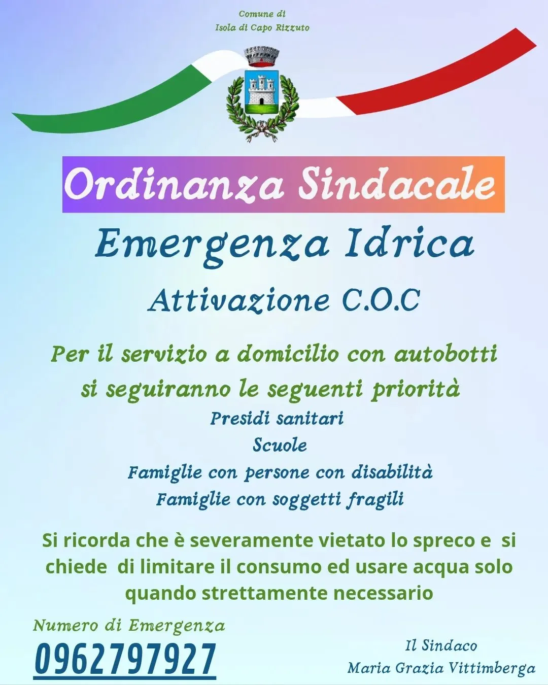 Attivazione del c.O.C. Per la crisi idrica sul territorio Comunale