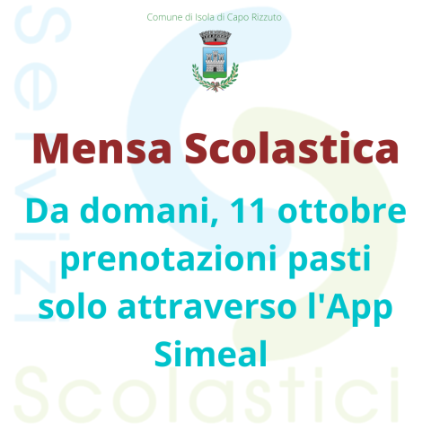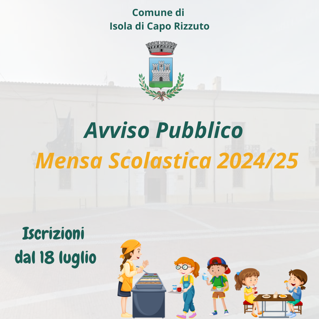 L’Ufficio Pubblica Istruzione rende noto che a far data da lunedì 03 ottobre 2022 avrà inizio l’erogazione dei servizi di refezione e trasporto per quanto concerne gli Istituti Scolastici insistenti sul territorio del Comune di Isola di Capo Rizzuto.