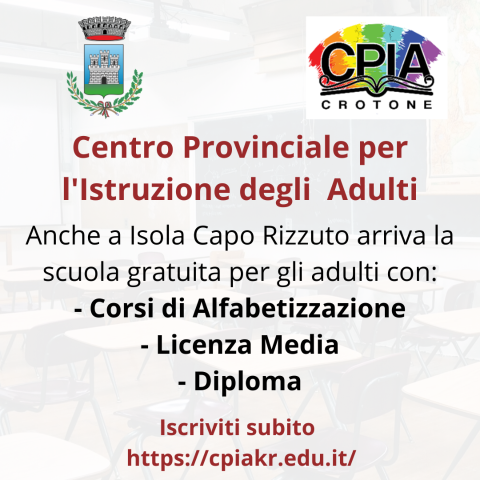 Con la collaborazione dell'ente comunale che darà disponibilità di una sede, anche Isola Capo Rizzuto dal prossimo anno avrà sul territorio un "Centro per l'istruzione degli Adulti".