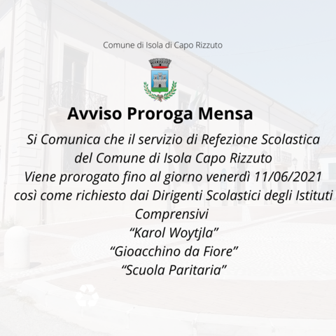 Avviso Proroga Mensa Scolastica