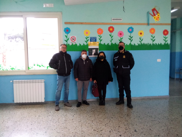 Questa mattina il Sindaco Maria Grazia Vittimberga, presso la Scuola vandalizzata di Madonna degli Angeli, la squadra di Vigilanza che da oggi si prenderà cura della sicurezza delle scuole nelle ore di chiusura delle stessa.