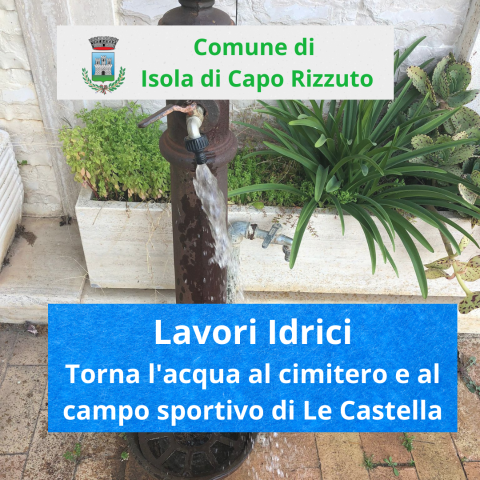 E’ stata ripristinata nei giorni scorsi l’acqua presso il cimitero di Le Castella dopo anni di attesa e lamentele inascoltate da parte dei cittadini della frazione.