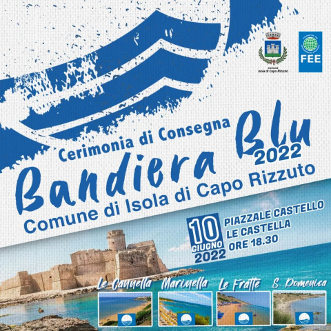 Si terrà domani, venerdì 10 giugno, la Cerimonia di Consegna della Bandiera Blu 2022 al Comune di Isola Capo Rizzuto.