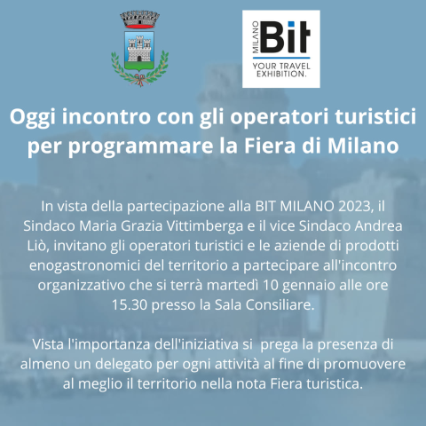 In vista del TTG di Rimini, la manifestazione di riferimento per la promozione del turismo mondiale, l'Amministrazione Comunale intende incontrare gli operatori del settore per organizzare insieme la partecipazione all'evento.