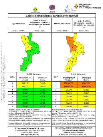 allerta ARANCIONE, sabato 17 settembre, lungo la costa tirrenica settentrionale della Calabria (Cala 1 e 2).