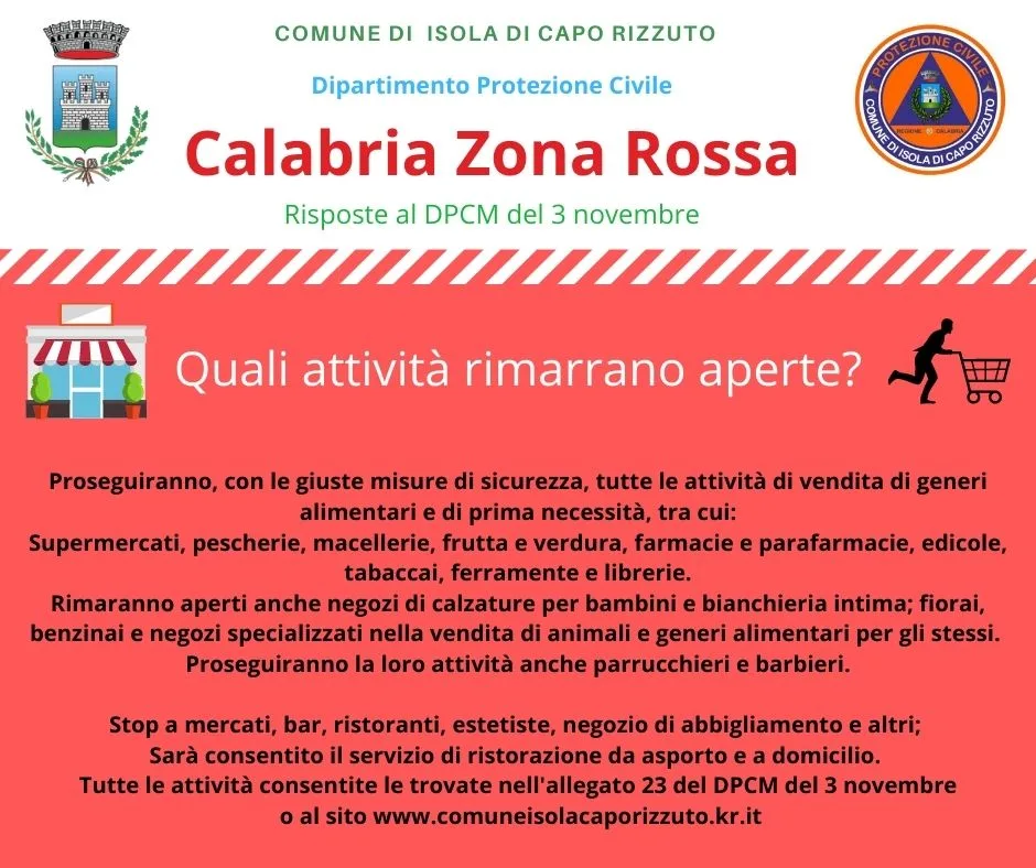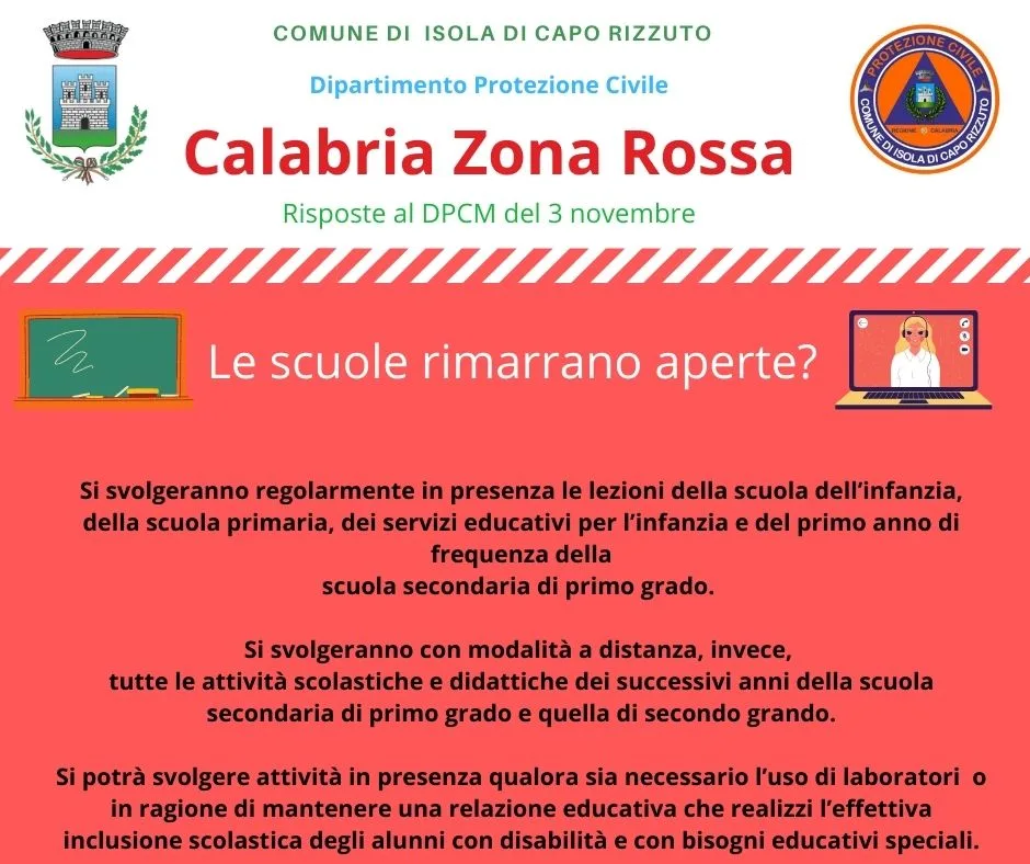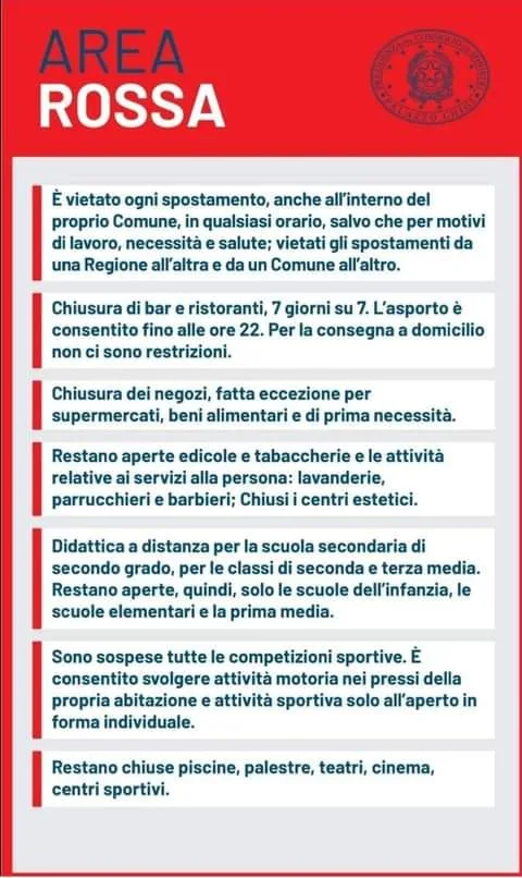 DPCM del 3 Novembre, sintesi in slide dei principali punti del Decreto per le Zone Rosse
