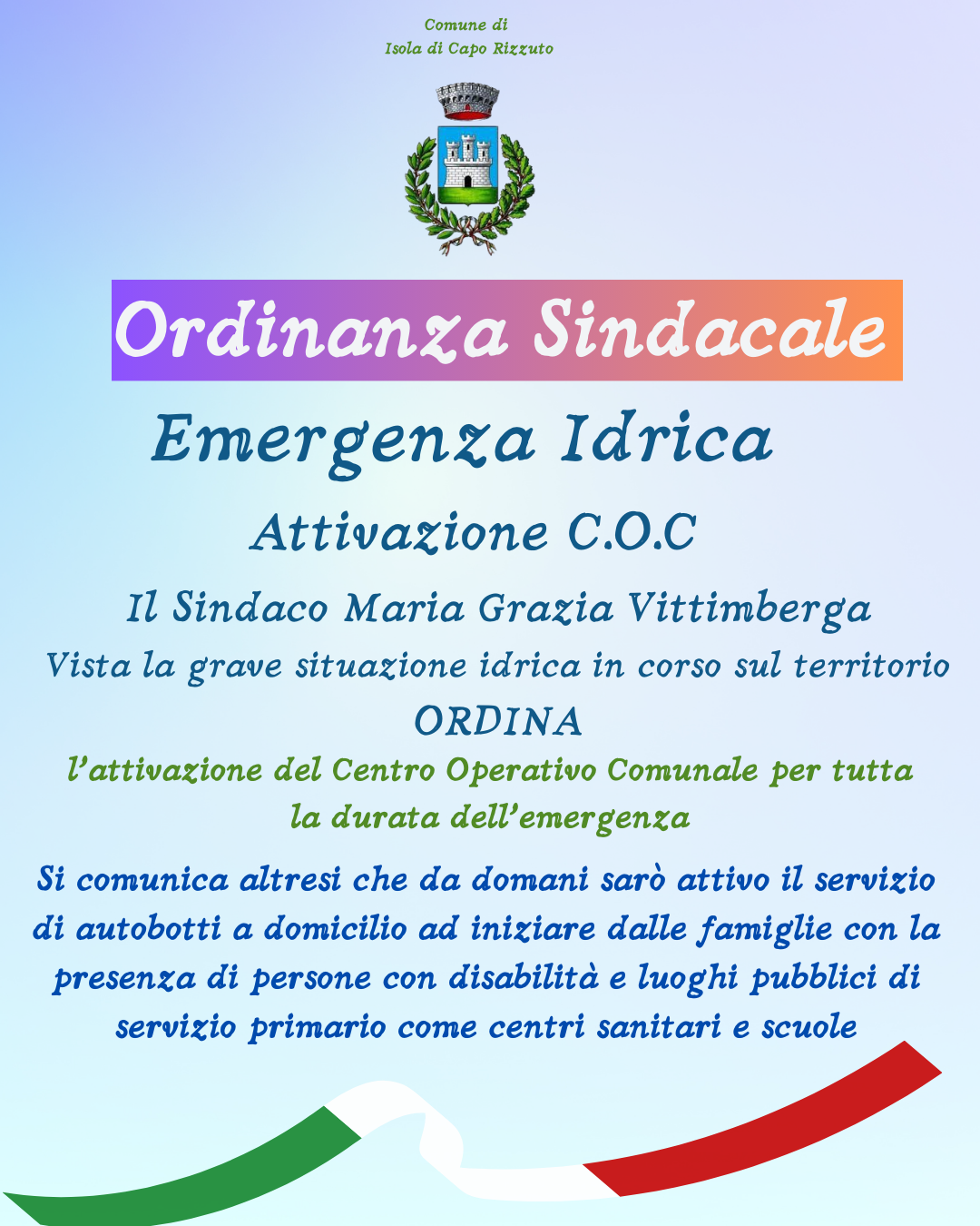 ATTIVAZIONE DEL C.O.C. PER LA CRISI IDRICA SUL TERRITORIO COMUNALE