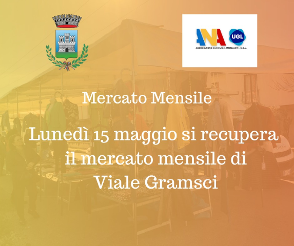 Il consueto mercato mensile di Viale Gramsci si svolgerà lunedì 15 maggio 2023.